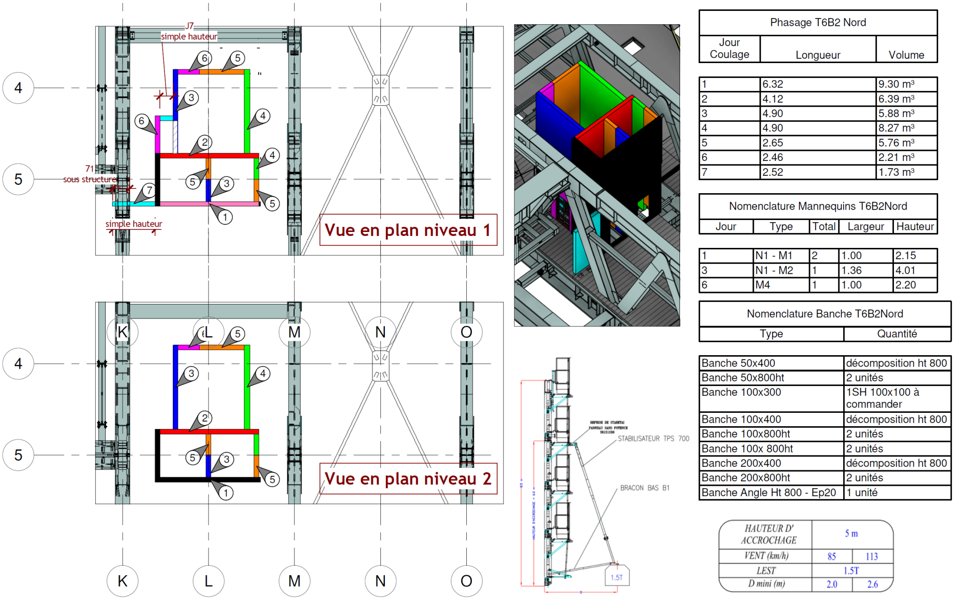 Réalisation de phasages d’exécution détaillés pour la mise en œuvre de voiles de cages d’ascenseurs double hauteur au sein d’une structure métallique complexe, sur un chantier en surplomb des voies SNCF.
